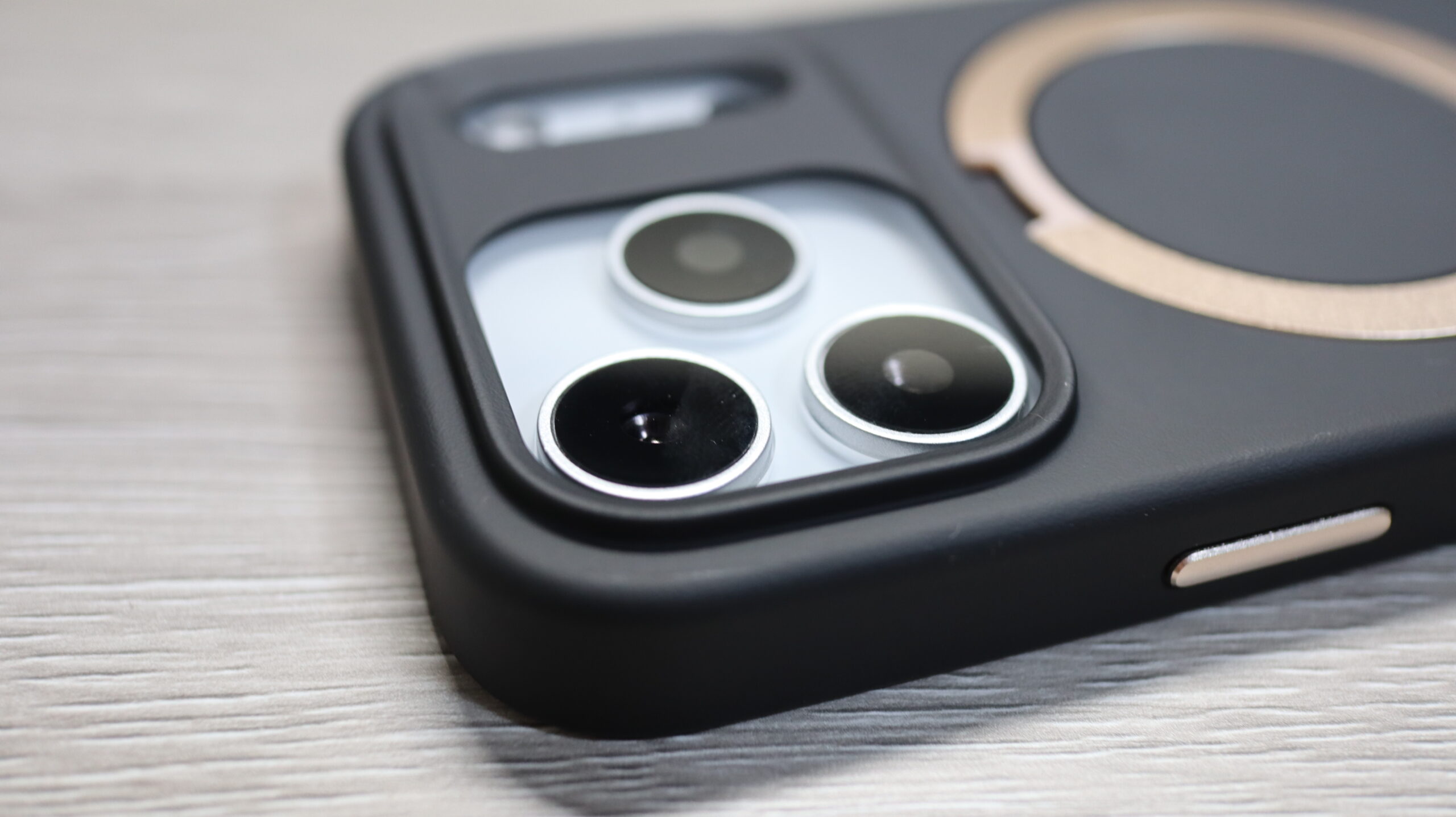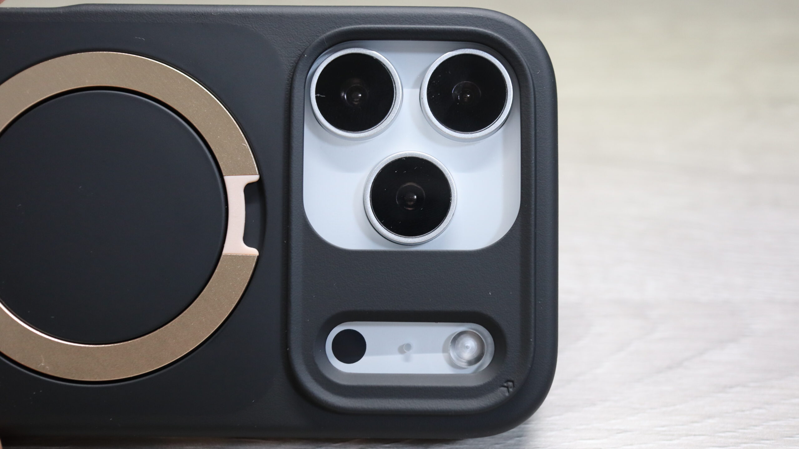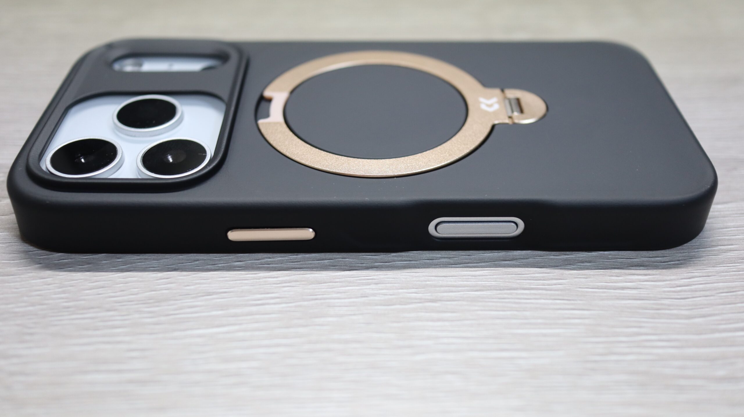 ケース内側にも背面とスタンドと同じMagSafe部分はゴールドになっています。