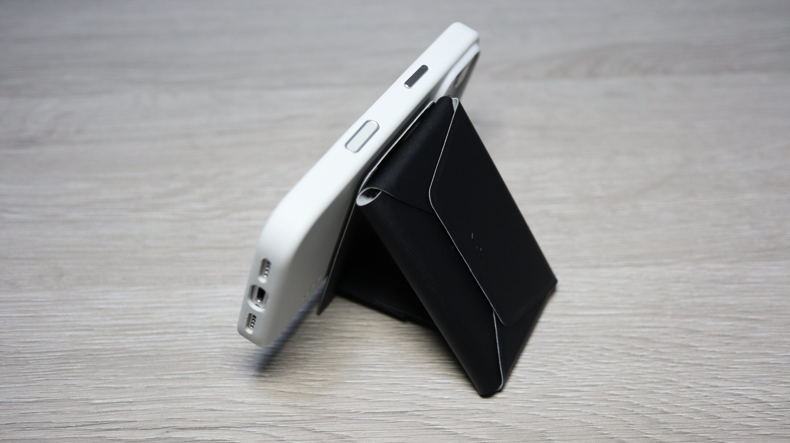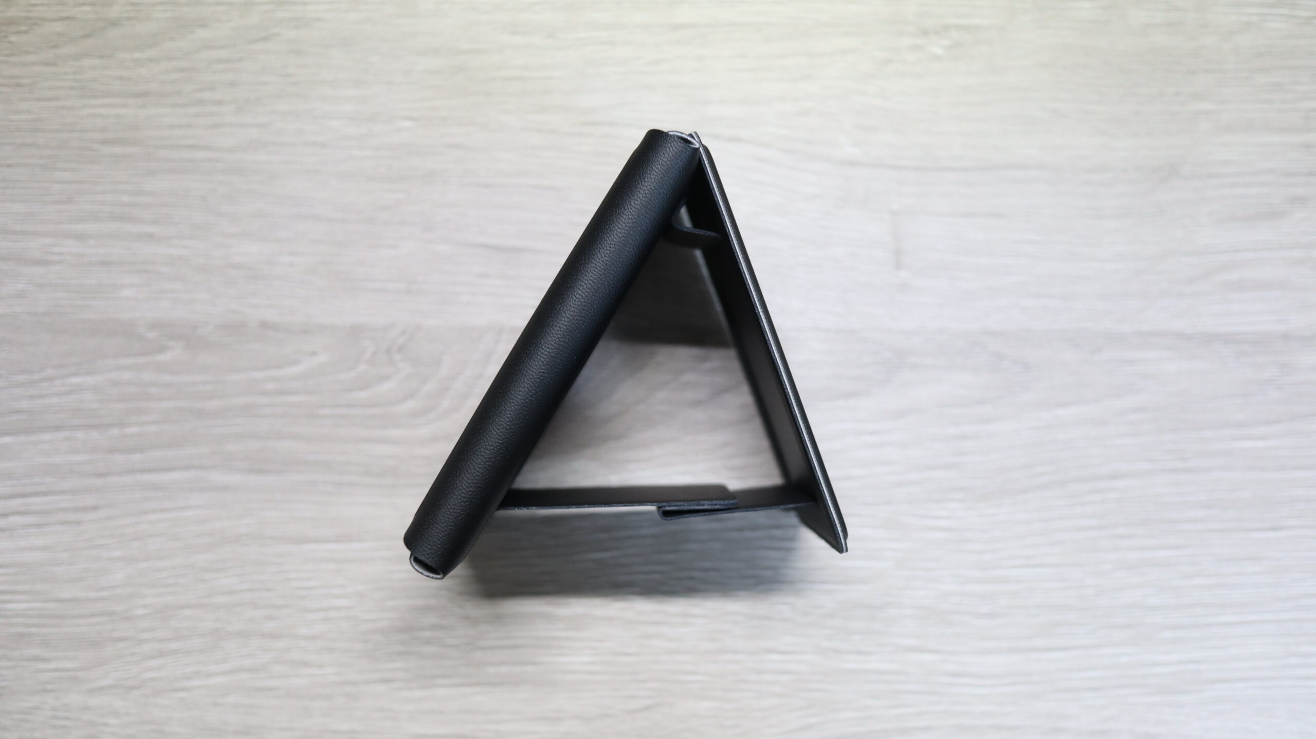 スタンド機能付きも同様に、MOFT特製の「MOVAS™」ヴィーガンレザーが全面に使用されているミニマルなデザインになっています。