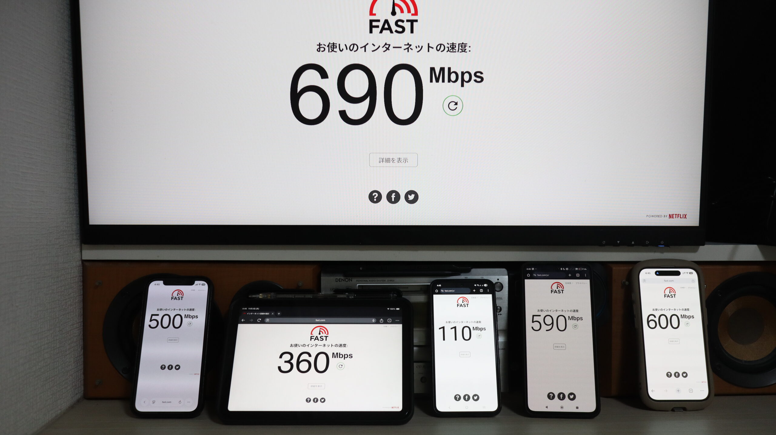 計測:fast.com(https://fast.com/ja/)各端末5回~10回程度測定