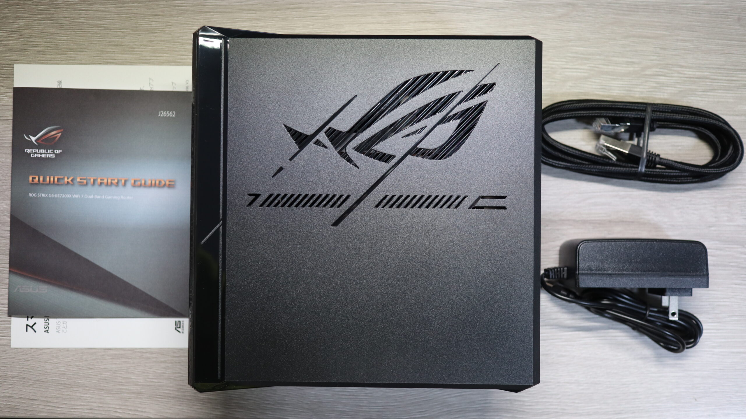 ROG Strix GS-BE7200X、ROG RJ-45 cable、Power adapter、Quick Start Guide、Warranty card