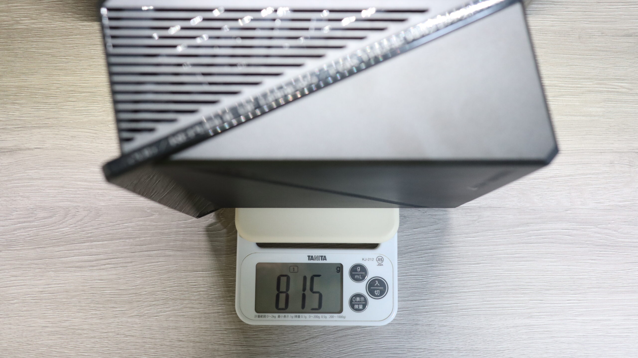 サイズは 225 x 90 x 225mm、キッチンスケールでの重さ実測値は815gです。