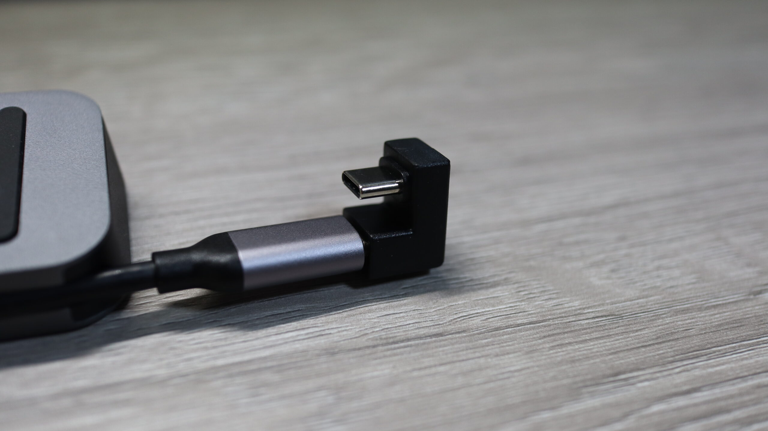 ストタンドとして利用でき、底面に置けて横幅スペースを減らせますが、USB TypeCにU字コネクタ使用でさらにスッキリさせることが可能です。