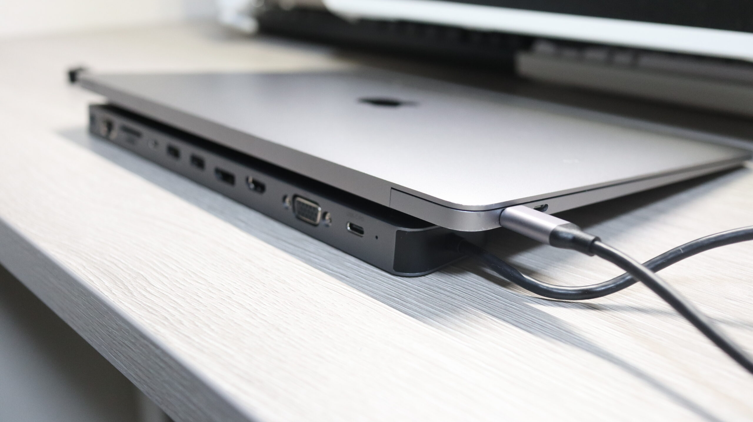 少しマニアックですが、ノートPCのモニターを外してSlabtop化したPCとの相性が抜群です。ドッキングステーション自体がスタンドにもなり、スッキリします。また、USB TypeC1本で11ポート拡張ができ、側面ではなくPC上部側から配線もでるため横幅のスペースを節約できます。
