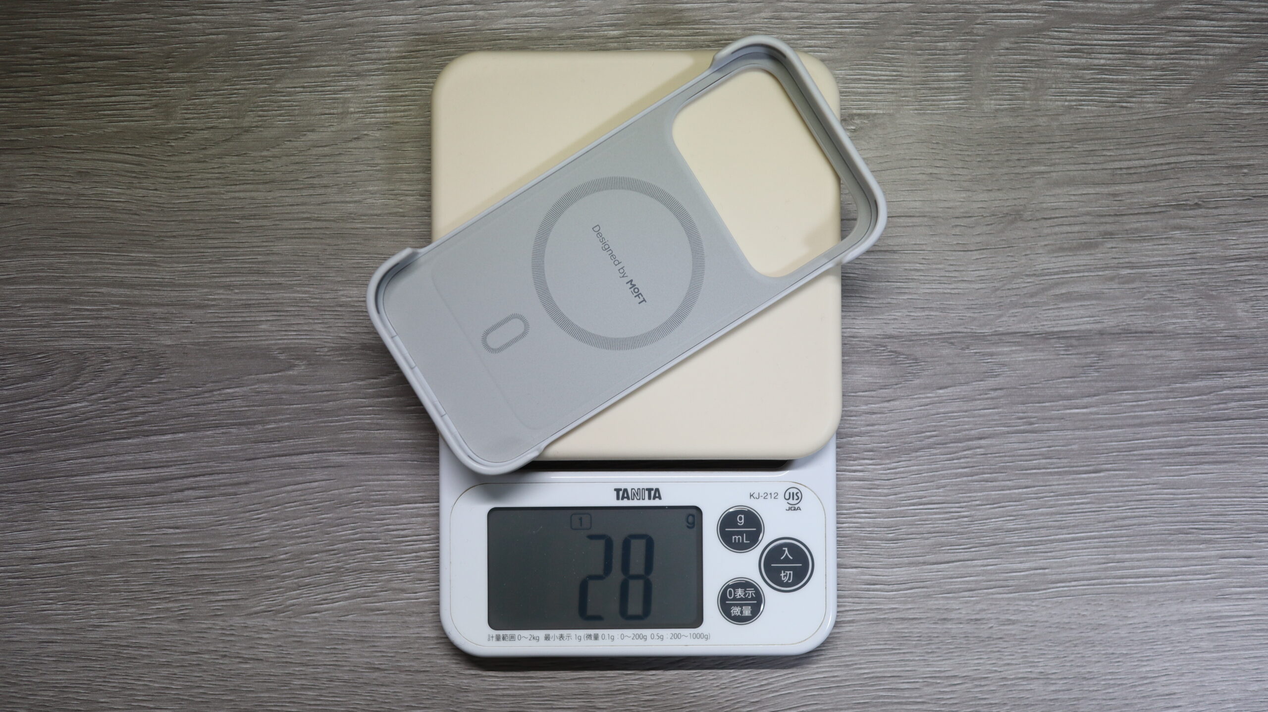 サイズは約153.4 × 75.2 × 15.3mmです。キッチンスケールでの実測値も28gです。