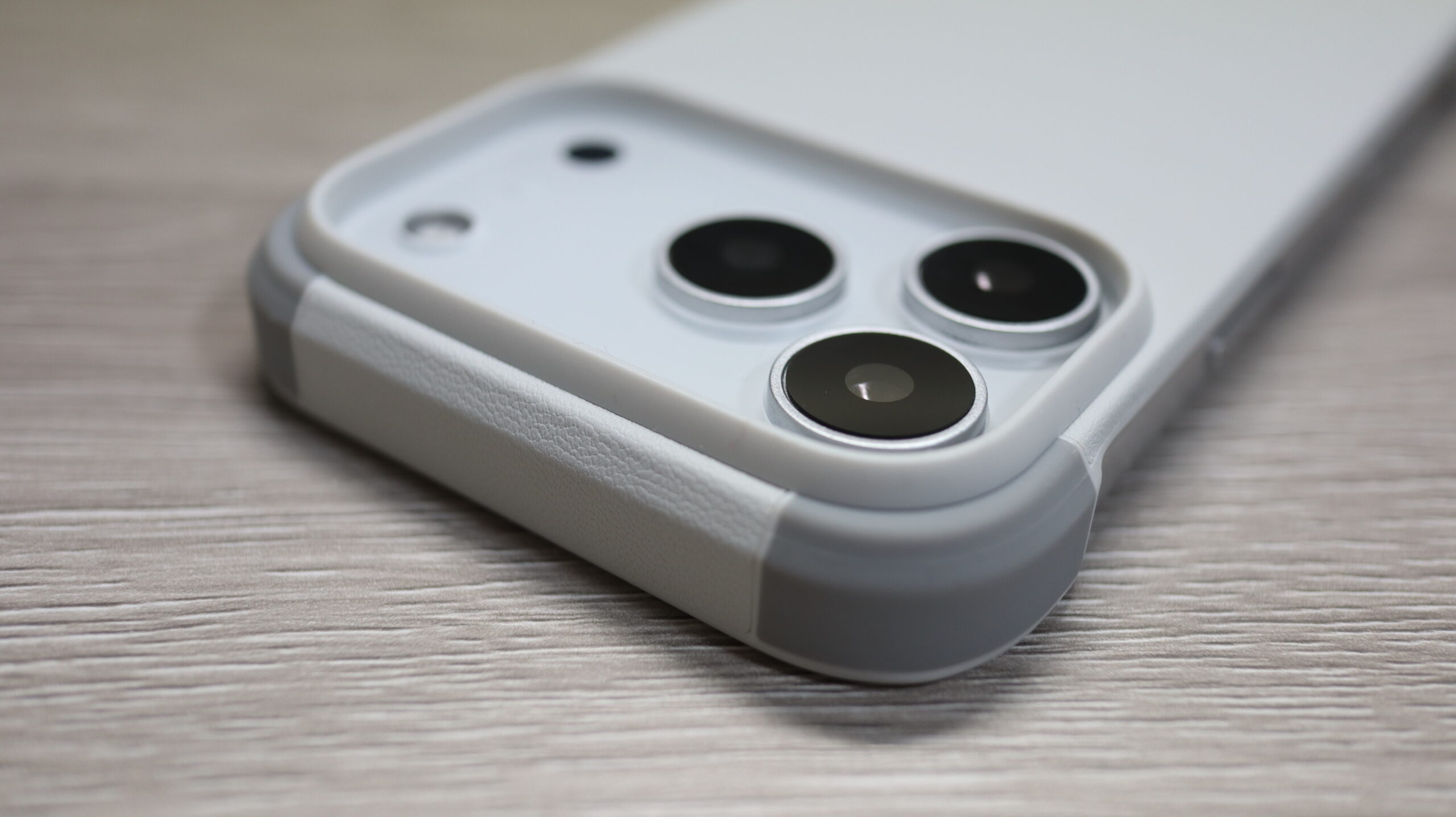 iPhone 17 Proの大きく飛び出したカメラレンズを守るため、レンズ周りのフレームが高く設計されています。机に置いた際もレンズが直接触れないよう配慮されています。