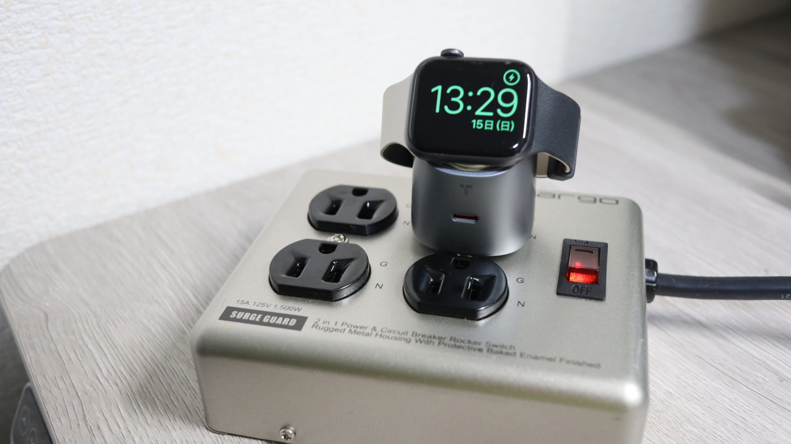 Apple Watch用充電部分が白くないデザインも珍しいです。