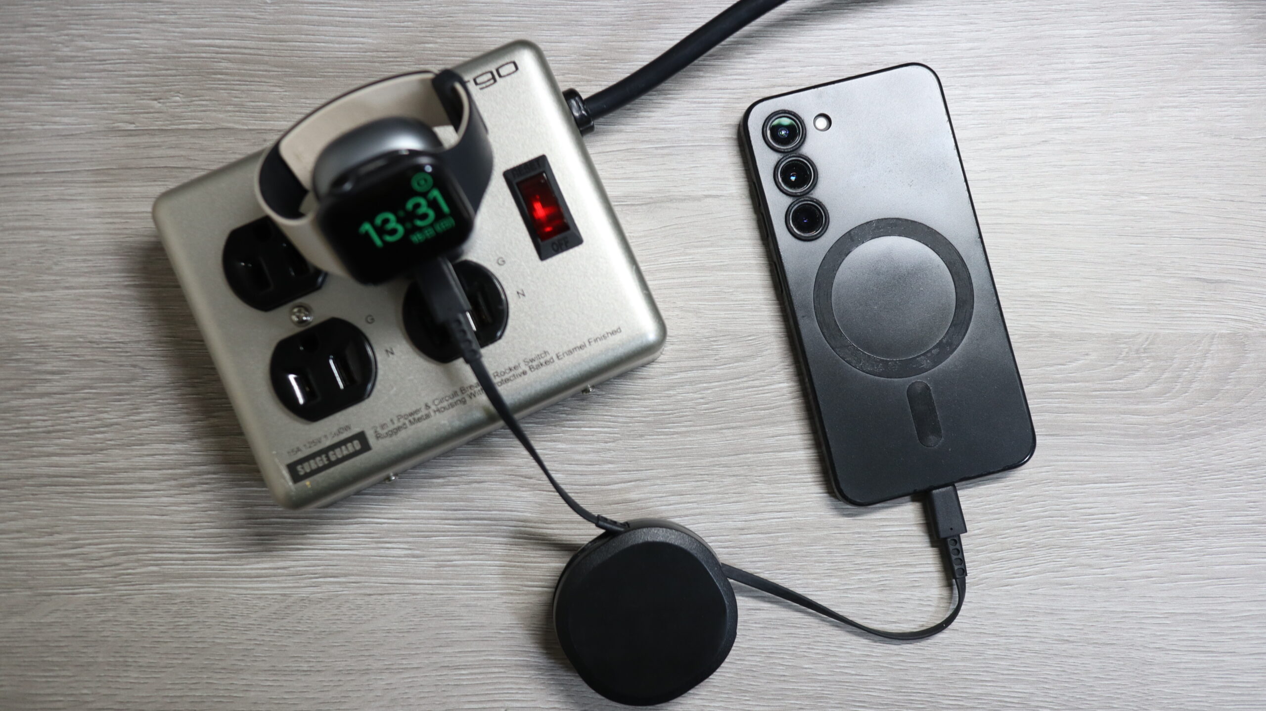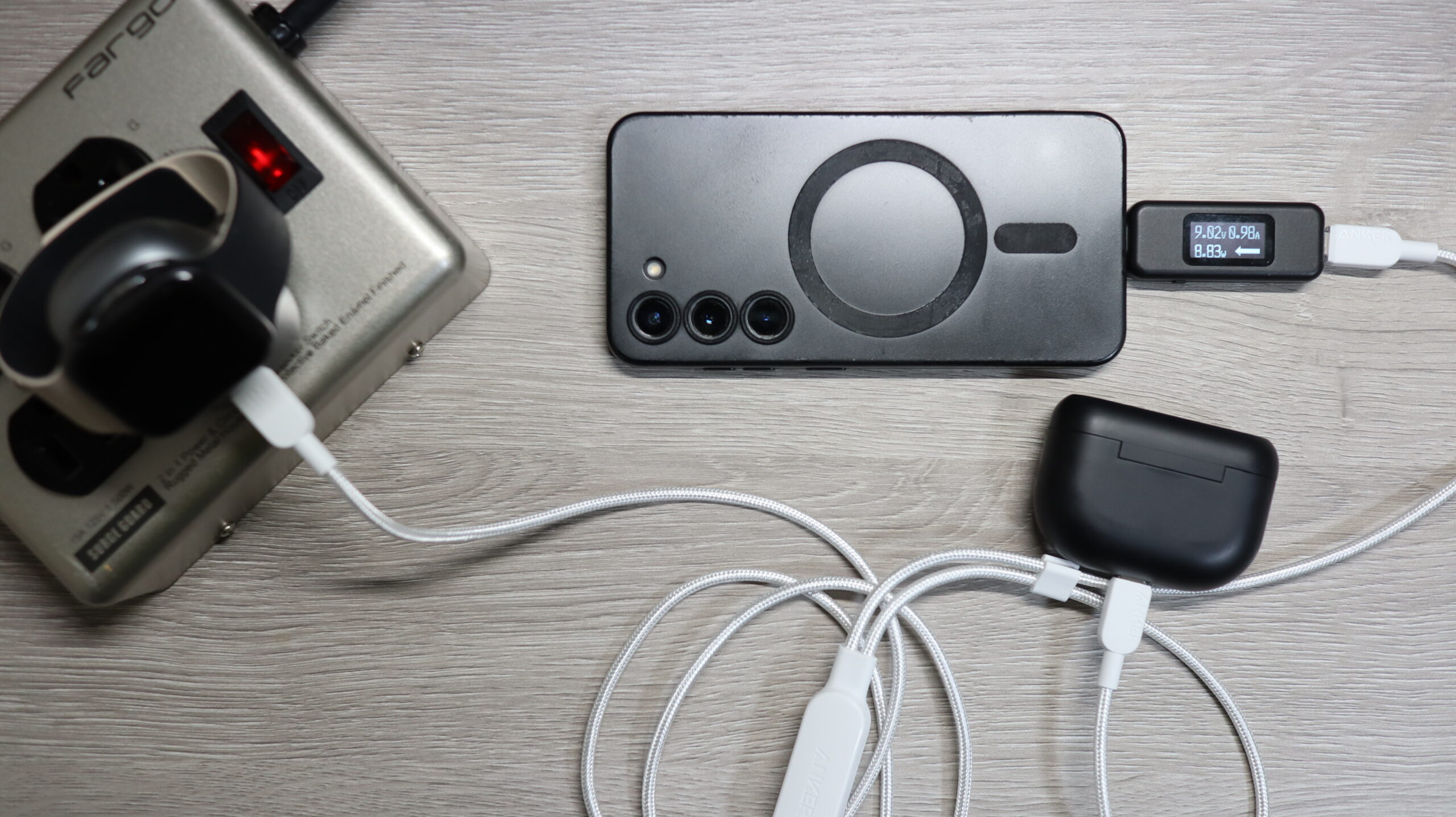 USB Type-Cポートは1つしかありませんが、二股のケーブルを使用することで3つデバイスを充電できます。