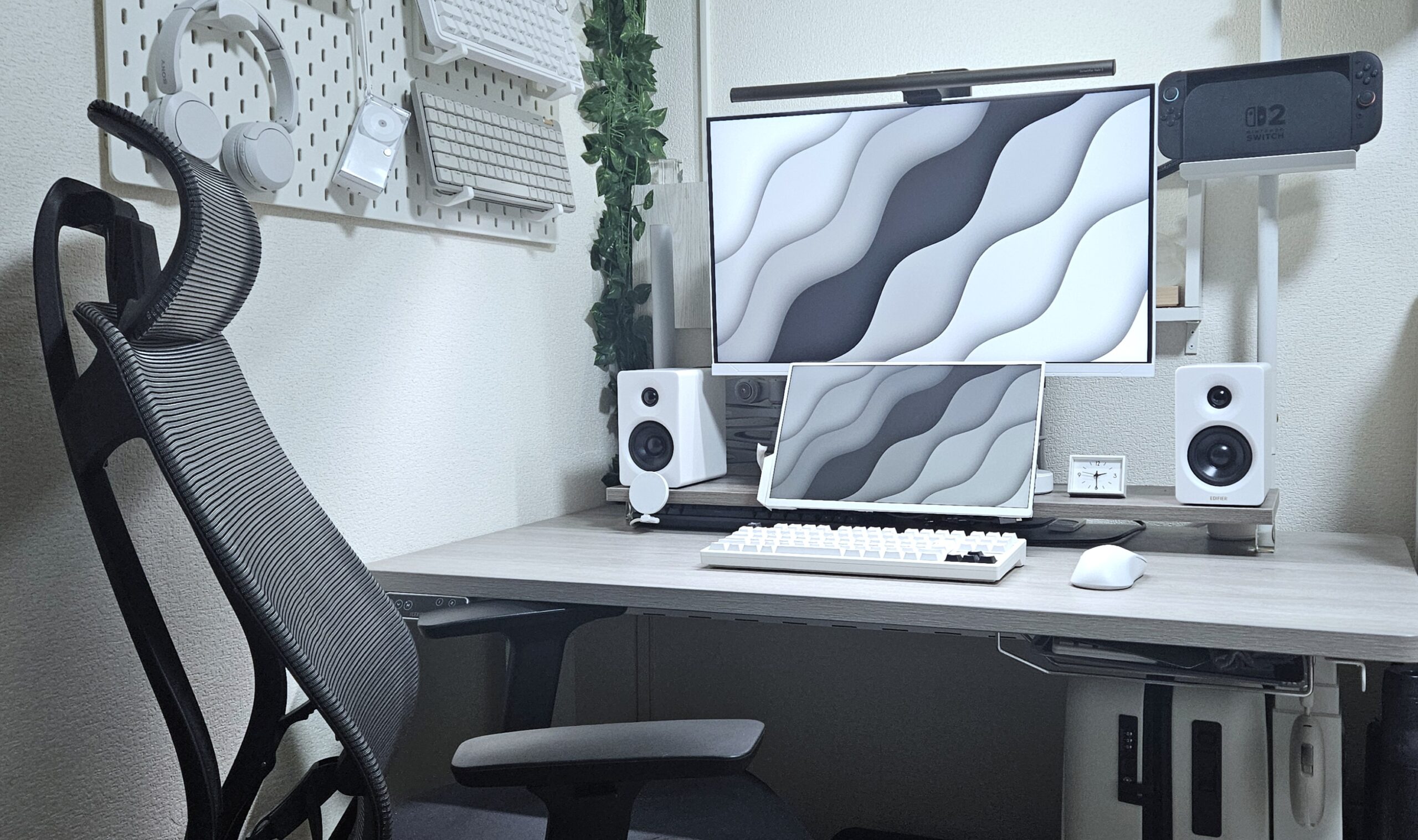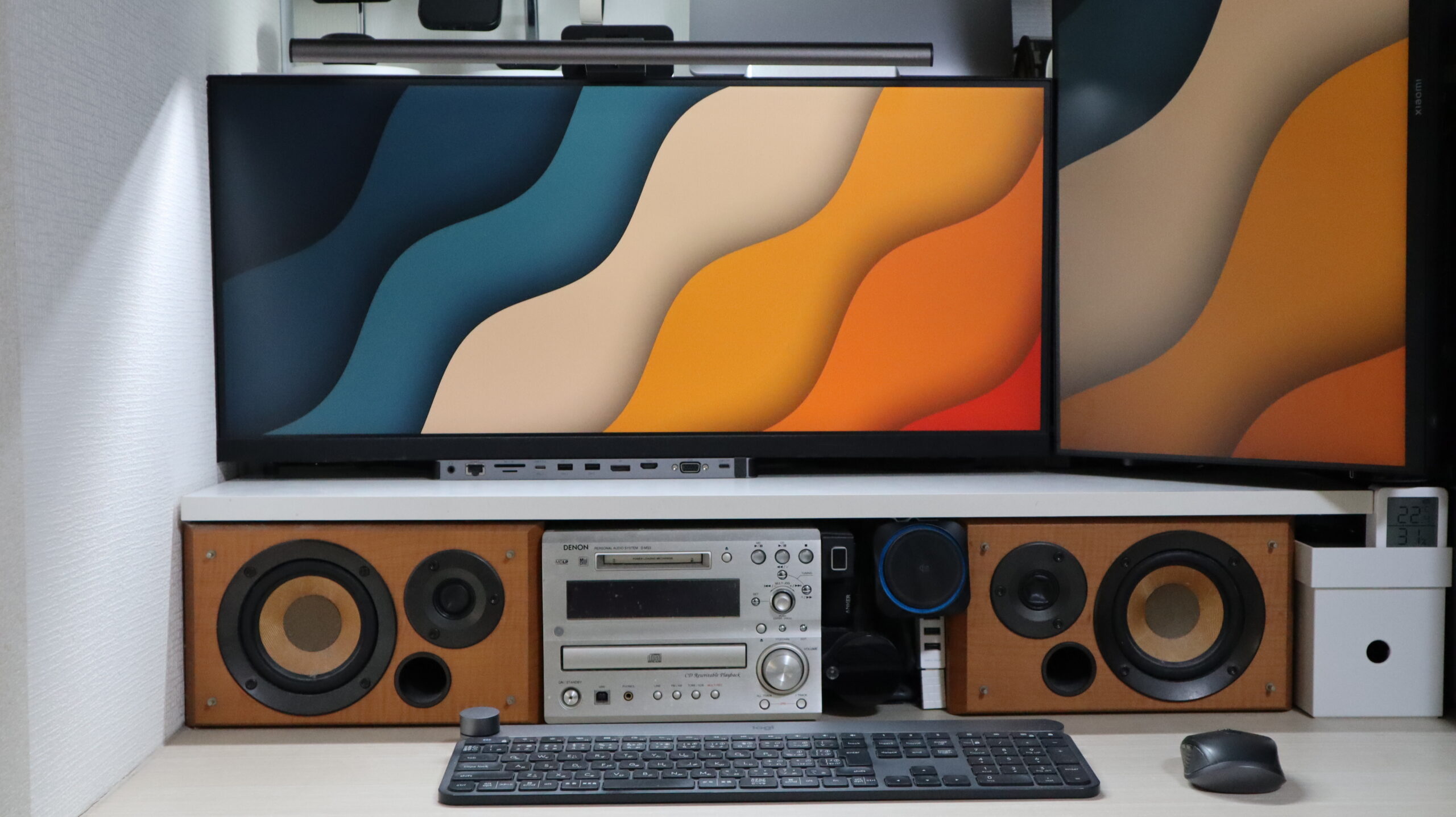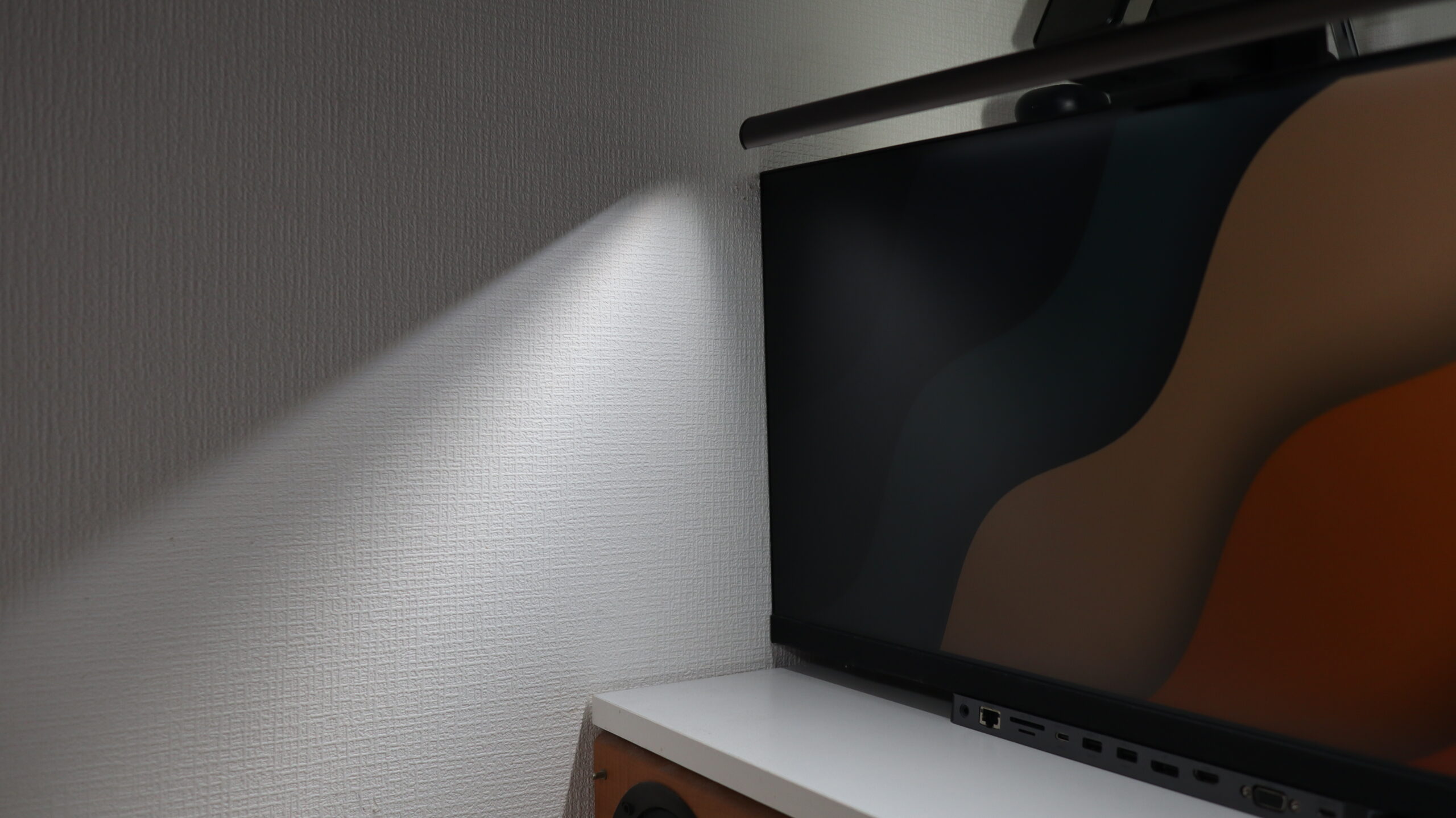 まずは、光がほとんど入らない「押入れデスク」に設置しました。「ScreenBar Halo 2」1つでバックライトも含めてカバーできます。