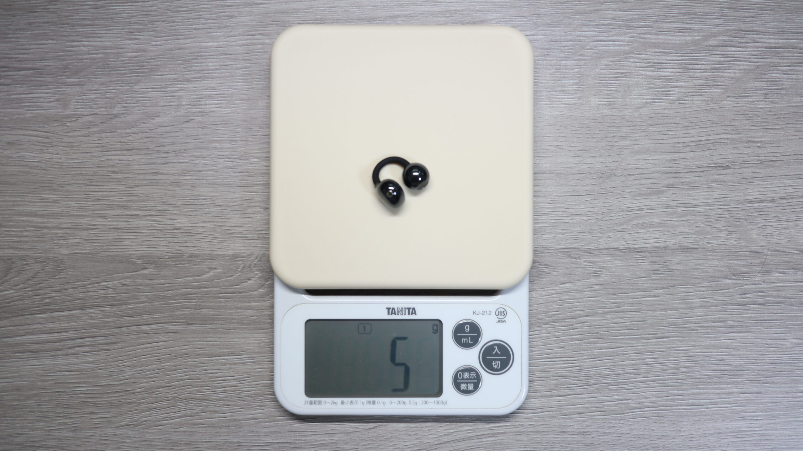 各種重量はイヤホン単体で約5.1g 、充電ケースは約37.8g、イヤホンとケースを合わせると約48gです。